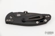 This XM Slippy by Hinderer features a DLC stonewashed slicer blade with removable thumbdisc. The handle has carbon fiber scales, DLC tumbled titanium liners, DLC tumbled stainless steel spring, lanyard hole, tip up or down reversible DLC tumbled titanium clip. Comes with original box and papers. This knife was hand assembled by Rick Hinderer. Excellent condition.