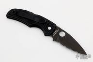 This Native folder has a black spear point serrated blade with a notched thumb rest. Includes a black handle complemented by black stainless steel hardware. Includes original box and papers. Excellent Condition.