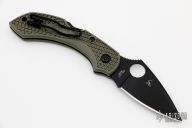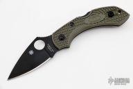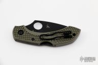This Dragonfly II by Spyderco features a black finished blade with thumbhole and notched thumbrest. The handle has OD Green FRN scales, stainless steel backspacer, and a tip up clip, left or right reversible. Comes with original box and papers. Excellent condition.