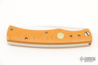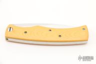 This Ultra Hunter D/A Automatic by Rainy Vallotton is Prototype #2, it has a mirror polished drop point blade. The handle has Westinghouse paper micarta scales, anodized titanium liners with jeweled interiors and a stainless steel backspacer. Clean lines and quick action. Has a few light scratches, otherwise excellent condition. Nice lockup and blade seating. Comes with original box and COA.