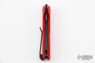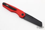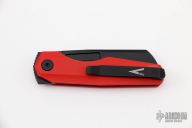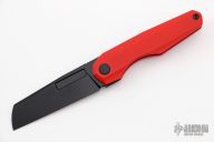 This Neuron by Vero Engineering features a black tumble finished blade with notched thumbrest and thumbhole. The handle has red G-10 scales with inlaid titanium liners, tip up titanium clip with hidden screws. Rides on bearings, nice detent, lockup and blade seating. Comes with original box.  #1509. Excellent condition.