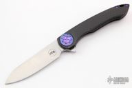 This Cruze frame lock flipper by Curtiss Knives features a satin finished drop point blade with a notched thumbrest and flipper. The handle has a titanium and carbon fiber frame complemented by anodized titanium hardware. Has a couple light scratches, otherwise excellent condition.