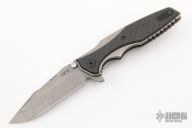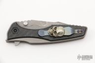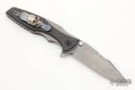 This rendition of the 0393 folding knife is outfitted with a working finished handle and blade, and impressive glow in the dark carbon fiber overlays. ZT's 0393 pairs an aggressive Rick Hinderer design with a solid Zero Tolerance build to create a substantial EDC folding knife. The 0393 sports a Hinderer Maximus inspired handle with a titanium frame and stunning glow carbon fiber overlays. When not charged the glow carbon fiber looks just like regular carbon fiber. Its harpoon style blade is made from CPM-20CV steel in a working finish. This knife is compatible with a selection of Hinderer custom hardware to make your knife stand out from the crowd. Features: KVT ball-bearing pivot for smooth and easy one-handed opening. Reversible pocket clip for secure left or right tip-up carry. 20CV Spanto blade provides excellent edge retention, superior hardness, and piercing power. Has been used, has scuffs and scratches, has been resharpened, otherwise good condition. Comes with a custom skull clip (it is not a Steel Flame clip, there are no markings on it)