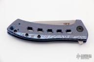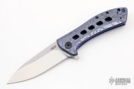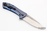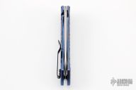 This 0801 Rexford Flipper has a satin finished sheepsfoot style blade with swedge. Handle is fluted blue anodized titanium with polished finished stainless steel tip up (RH/LH) clip and lanyard hole. Has a couple very light scratches, otherwise excellent condition.