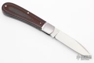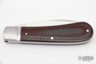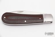 This Zulu Spear by Mike Zscherny features a spear point blade with a hand rubbed satin finish and nail nick. The handle has a fluted stainless steel bolsters, red G-10/carbon fiber covers, stainless steel liners and springs. Half stop on blade, flush in all positions. New from maker.