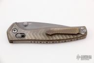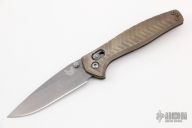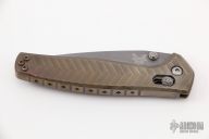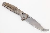 This 781 Anthem by Benchmade features a tumble finished drop point blade with dual thumbstuds. The handle is comprised of a machined and integrally constructed titanium frame with axis lock and matching reversible tip up clip. Has some light scuffs/scratches, otherwise excellent condition.