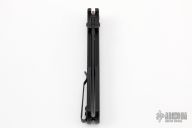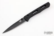 This Fact by Benchmade features a black spear point blade with false top edge, dual thumbstuds and a notched thumbrest. The handle has black aluminum scales with black stainless steel liners and tip up black stainless steel clip. Excellent condition.