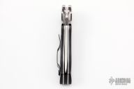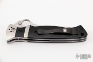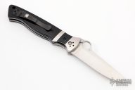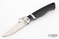 This Vallotton Sub-Hilt by Spyderco features a satin finished blade with a thumbhole, dual thumbstuds, and notched thumbrest. The handle has stainless steel bolsters, black G-10 scales, stainless steel liners, black G-10 backspacer, and 4-way reversible black stainless steel clip. Nice detent, lockup and blade seating. Has a few light scratches, otherwise excellent condition.
