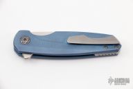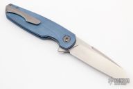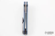 This Haptic by Holt Bladeworks features a tumbled blade with a notched thumbrest and flipper tab. The handle features a milled and anodized titanium frame with an anodized titanium  tip down pocket clip with matching hardware. Nice detent, lock up and blade seating. Includes the original tools and papers. Excellent Condition.