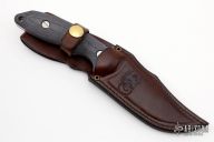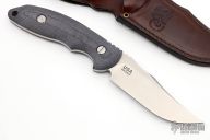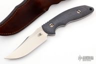 Born with a passion for the great outdoors and touched with passion of the old west comes our new fixed blade hunting/utility knife The Emmett. Released just in time for fall hunting it will prove to be your most trusted hunting companion ready for any tasks put before it. The pedigree for The Emmett comes from the popular FXM but as those familiar with the FXM will note that he is a completely different character. The stout .165” thick blade of CPM20CV starts at the handle in a wide 1.25” perfect for that slicing grind angle. The blade shape is a long “Bowie” style clip with a extra concave thumb rest set in the perfect spot for those hard push cuts. The clip point style front end allows for those fine cuts utilizing the nimble tip of the blade. The handle follows the style of the iconic XM-18 series of folders with its very ergonomic profile that begs this knife to be used for long periods of time. With the addition to the Emmett line we added contoured handles that fill out your grip comfortably while adding eye-popping appeal. And finally finishing off the grip is perfectly situated fine thumb jimping ensuring a solid grip while using the knife in a fencing grip. For the Emmett we again chose Woodland Harness for a exceptional leather sheath. The Emmett is that knife and hunting companion that is worthy of handing down through generations of outdoor enthusiasts!