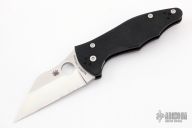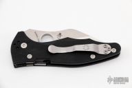 This Yojimbo 2 by Spyderco features a satin finished wharncliffe blade with thumbhole. The handle has a black G-10 frame with stainless steel liners, lock is on the spine of handle. 4-way reversible stainless steel clip. Nice detent, lockup and blade seating. Excellent condition.
