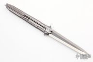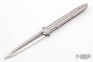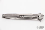 The Stedemon Thunderfury is a high performance folding knife with a sleek and slim design for streamlined everyday carry. This model sports a tumbled titanium handle and a satin finished dagger blade. A double sided-flipper provides a useful blade guard in the open position. Flow-through stand-off construction provides a lightweight build and easy knife maintenance. A low-profile titanium pocket clip finishes off the solid EDC design.