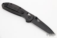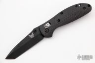 This Mini Griptilian by Benchmade features a black tanto blade with notched thumbrest and dual thumbstuds. The handle has carbon fiber scales, stainless steel liners and tip up clip. Excellent condition.