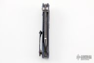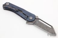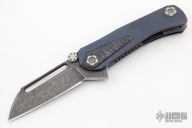 This Echo-1 by Mikkel Willumsen features an acid tumbled wharncliffe blade with dual thumbstuds and flipper. The handle has a milled and anodized titanium frame with tip up black timascus clip and a black timascus inlay. Has stainless lockface insert, rides on bearings, nice detent, lockup and blade seating. Excellent condition.