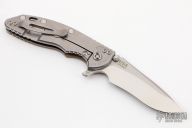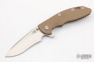 This XM-18 flipper from Rick Hinderer Knives features a 3.5" tumble blade, notched thumbrest and flipper, dual thumbstuds. The handle has a coyote G-10 scale, and stonewash titanium handle/clip. Clip can be mounted for tip up or down carry. Nice lockup, seating, and detent. Comes with original box, papers, and extra pivot washers. Includes original box. Excellent condition.