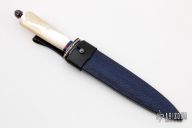"I have always had a great interest in knives, even when I was a young boy growing up in Wisconsin. My dad gave me a knife that my grandfather made. I never got to meet my grandfather so that knife is very special to me. I first got started making knives in 1988 when a co-worker gave me a piece of tool steel from a saw to work. My brother told me that the knife that I made out of it looked like something made in a prison. I enjoy knifemaking because you are starting out with a chunk of steel and a chunk of ivory, and you hopefully end up with something of beauty. These are a few of the many makers that have inspired me: Buster Warenski, D'Holder, Dennis Freidly, Tim Hancock, and Don Norris. I prefer using Damascus steel because of the wide variety of beautiful patterns available. I like using natural materials for handles such as fossil Walrus, Mammoth ivory, and Mammoth teeth."