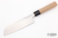 This Kamagata Usuba from Shinichi Watanabe features a stainless clad blue steel blade with a hidden tang construction. .156" Blade Stock. 1.79" Blade Depth. The handle features horn hilt nicely complemented by a Ho wood grip. This is a fantastic piece that is razor sharp. New from Maker.