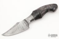 This Integral Hunter by Samuel Lurquin features a Damascus blade with sharpened top edge, .156" blade stock and 1.570" blade depth, hidden tang construction. The handle has an integral Damascus guard and a curly maple grip. Brilliant handle contouring. Comes with a zippered case. Excellent condition.