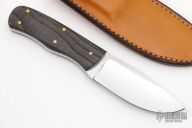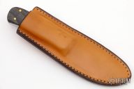 This Hunter features a mirror polished drop point blade with a file worked blade spine and a full tang construction.  .188" Blade Stock.  1.22" Blade Depth.  The handle features curly ash wood scales.  Includes a brown leather sheath.  New from maker!