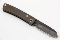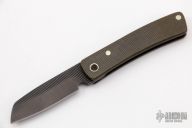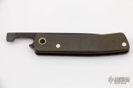 This Friction Folder by Mike Morris features a wharncliffe style blade ground from a file. The handle has green canvas micarta scales. Friction bar features a bottle opener. Comes with COA. Excellent condition.