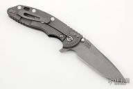 This XM-18 Flipper by Rick Hinderer Knives features a 3.5" stonewashed finished S45VN blade, notched thumbrest and flipper, dual thumbstuds. The handle has a carbon fiber scale, stonewashed titanium liner, titanium hardware, stonewashed titanium lockside. Clip can be mounted for tip up or down carry. Nice lockup, seating, and detent. Excellent condition.
