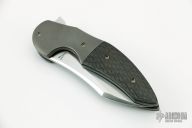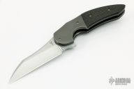 This Persecutor by Jeff Vandermeulen features a hand rub satin finished blade and flipper. The handle has tumbled titanium bolsters with a matching tip up pocket clip complimented by carbon fiber scales.  Includes a padded zippered case and COA.  Excellent Condition.