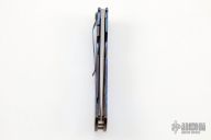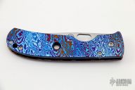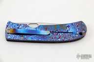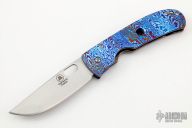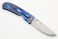 This TNT by Tom Mayo features a fine bead blasted blade with thumbhole. The handle has a timascus frame with titanium tip down clip. Nice detent, blade seating and lockup. Comes with velcro case. Excellent condition.