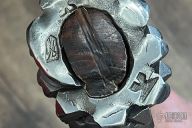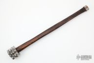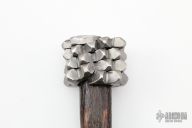 This hand forged mace by Nitzan Lilie features a carbon steel head that has been hand forged and twisted around a burned hickory handle with forged steel butt and copper rivet. Excellent condition.