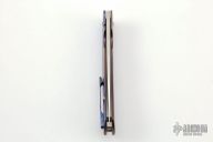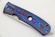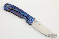 This Large TNT Framelock by Tom Mayo features a hand rub satin finished blade with a thumbhole. The handle has a Timascus frame and tip up clip. Smooth action. Nice detent, blade seating and lockup. Excellent condition.