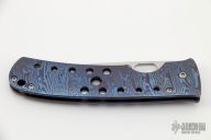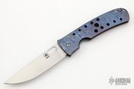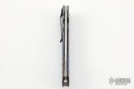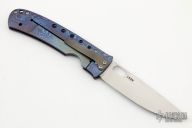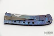 This Large TNT Framelock by Tom Mayo features a hand rub satin finished blade with a thumbhole. The handle has a Timascus frame and tip down bead blasted titanium clip. Smooth action. Nice detent, blade seating and lockup. Excellent condition.