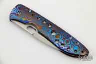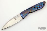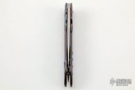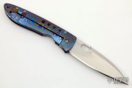 This Framelock by Tom Mayo features a hand rub satin finished blade with thumbhole. The handle has a Timascus frame. Smooth action. Nice detent, blade seating and lockup. Excellent condition.