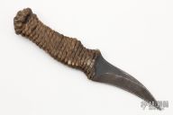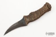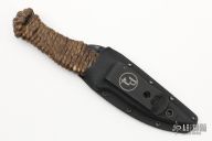 This Liberator by Tracker Dan features a black finished blade with .153" blade stock and .883" blade depth. The handle has flat hemp cord wrap with shroom cap at the tail. Comes with two kydex sheaths and the knife will fit in either direction. Excellent condition.