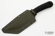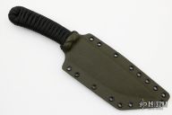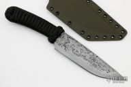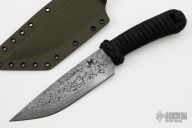 This knife by James Helm features a hand forged blade, .219" blade stock and 1.85" blade depth, hidden tang construction. The handle has a paracord wrap that has been epoxied. Comes with a kydex sheath set up for TekLok. New from Maker at Blade Show Texas 2022.