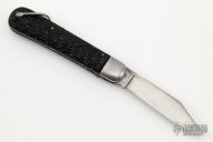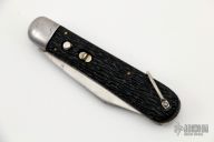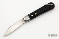 This antique auto by Schrade Cutlery features a clip point satin finished blade. The handle has steel bolsters, jigged scales, steel liners and backspacer, has safety. Nice action for its age. Has blade play, patina and scratches, otherwise good condition for its age.
