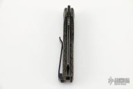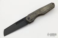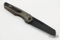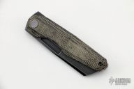 This Neuron by Vero Engineering features a black tumble finished blade with notched thumbrest and flipper. The handle has black canvas micarta scales with inlaid titanium liners, tip up titanium clip with hidden screws. Rides on bearings, nice double detent and blade seating. Comes with original box.  #1266. Excellent condition.