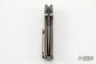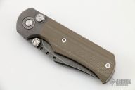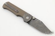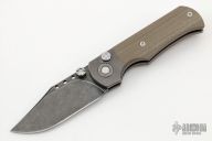 This TS338 by TwoSun Knives features a black tumble finished blade with notched thumbrest and dual thumbstuds. The handle has a tumbled titanium frame with green canvas micarta scales, tip up titanium clip and backspacer with lanyard pin. Comes with original box. Excellent condition.