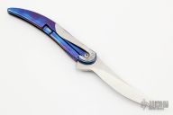 "I consider myself a part time Hobbyist knife maker that works in the shop between October and April every year and make about 5 knives a year total. I have been fascinated with cutlery from as far back as I can remember. I started out collecting factory knives. But I could always find faults with them. I then moved into the custom world and sold all the factory knives. Then I figured why not try my hand at making knives. So I slowly bought parts, knife making books and a few machines and gave it a go. In 1996 when I got a little older and had a few spare dollars to play with I tried my hand at cutlery but didn't have much success at the time. Soon after that I bought my first computer and researched anything to do with cutlery. I came upon Bladeforums which was the only knife related forum out there. They soon had a chat forum put on their server and after a short time on the chat forum I found out I was talking to Kit Carson every evening. I didn't know who Kit was at the time other than a knife maker. But Kit was very gracious and helped answer my many, many questions. In 1998 after a few months of questions, I was invited to Kit's house to learn. Since then, I have been back there many times and think the world of the entire Carson family, true southern hospitality at its finest. In 1999 George Young helped me with learning file work and working in Stellite/6K. I was fortunate to be able to buy some of Georges' equipment since he was winding down with his knife making career. In 2000 I was invited over to Darrel Ralph's house. Darrel helped me set up a few machines I bought. He built me mirror blocks and helped me to refine my knife making skills by doing my first auto knife under his supervision. In 2000 Alan Folts was very helpful in helping me obtain color on my knives with anodizing. Alan is the Ti coloring wizard. In 2007 Lee Williams helped me to understand the geometry behind the flipper. My flippers worked OK, then but Lee really helped me to get them dialed in to flip with just a finger."
