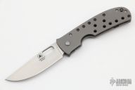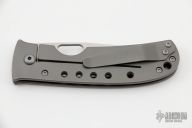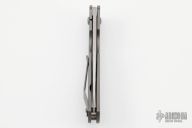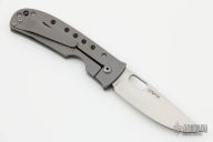This Covert folder by Tom Mayo features a hand rub satin finish and thumbhole opening. The handle has a bead blast titanium frame with titanium tip up clip, all titanium hardware. Smooth action. Nice detent, blade seating and lockup. Comes with velcro case. Has some light scratches on the clip and frame, otherwise excellent condtion.