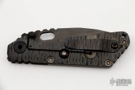 This Duane Dwyer Custom SNG CC features a black tanto blade with thumb hole and dual thumbstuds. Flame finished titanium handle with carbon fiber front scale. Titanium clip. Notches on thumbrest, rear of handle, and lockup. Includes Hinderer "Lock Bar Stabilizer" for maximum reverse lock retention. Nice detent, lockup and blade seating. Excellent condition.