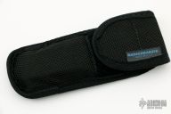 This Model 42A Balisong features a satin finished drop point blade and anodized titanium handles with an orange peel finish. Has T-latch. Includes original sheath, box, and papers. Has a couple light scratches on the latch. Excellent condition.