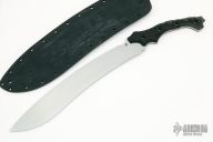 This Tacopis by American Kami features a satin finished chisel ground blade with false top edge, .197" blade stock and 2.215" blade depth, full tang construction. The handle has black G-10 scales. Comes with a kydex sheath. Excellent condition.