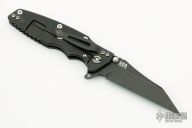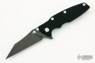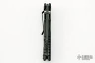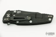 This Eklipse Flipper by Rick Hinderer Knives features a 3.5" battle black DLC finished blade, notched thumbrest and flipper, dual thumbstuds. The handle has a black MEFP G-10 scale, and battle black titanium handle/clip. Clip can be mounted for tip up or down carry. Nice lockup, seating, and detent. Comes with original box and extra hardware. New condition.