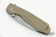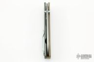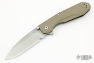 This 928 Proxy by Benchmade features a drop point bead blasted blade with dual thumb studs and flipper. The handle is comprised of a machined tan G10 "A" side with a bead blasted titanium lockside. Stainless steel tip up clip is reversible for left/right hand carry. Blade favors the right side slightly, solid lock up. VERY crisp detent. Includes original box and drawstring pouch. Has a couple light scuffs otherwise excellent condition.