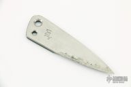 This ThumbTAC by Warren Thomas features a satin finished chisel ground titanium blade with blackG-10 laminate and a carbidized edge. 0.200" blade stock and .918" blade depth. Includes kydex sheath. Excellent condition.