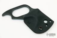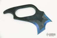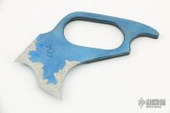 This knife by Warren Thomas features a finger print anodized titanium and black G-10 laminate blade and handle, chisel ground, .234" blade stock and 2.182" blade depth. Comes with kydex sheath intended for neck carry. Excellent condition.