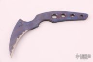This Ripper by Warren Thomas features a finger print anodized titanium on one side with a carbide edge, and black G-10 on the other, .298" blade stock and 1.164" blade depth, full tang construction. Comes with a kydex sheath. Excellent condition.
