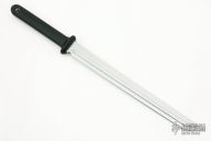 This TNT-15 by Scrap Yard Knives has a Shallow Hollow Bevel featuring our Busse's CBT (Corrugated Bevel Technology) which allows for more clearance behind the edge. The Resiprene C handle has a proven track record of over 23 years with no end in sight! Resiprene C is well known for its high durability, shock-absorbing, and slip-resistant qualities. The TNT-15 weighs in at approx. 22.9 oz. The oval handle has flats on top and bottom which assist in edge indexing in all conditions. This one has the "Raw Dog" finished blade, .249" blade stock and 1.368" blade depth, hidden tang construction. New from maker.