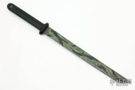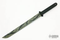 This TNT-15 by Scrap Yard Knives has a Shallow Hollow Bevel featuring our Busse's CBT (Corrugated Bevel Technology) which allows for more clearance behind the edge. The Resiprene C handle has a proven track record of over 23 years with no end in sight! Resiprene C is well known for its high durability, shock-absorbing, and slip-resistant qualities. The TNT-15 weighs in at approx. 22.9 oz. The oval handle has flats on top and bottom which assist in edge indexing in all conditions. This one has a Cerakote finished blade, .249" blade stock and 1.368" blade depth, hidden tang construction. New from maker.