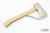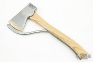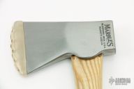 This Marble's Pocket Axe No.4 features a satin finished head with hammer pole. The handle has a hickory handle with folding blade cover. Comes with original plastic blade cover. Excellent condition.