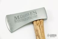 This Marble's Pocket Safety Axe features a satin finished head with hammer pole. The handle has a hickory handle with folding blade cover. Has a few light scratches, otherwise excellent condition.